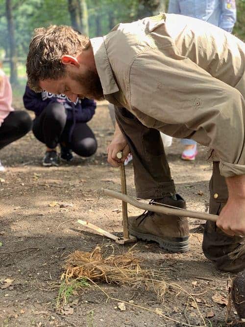 Friction fire lighting on our weekend bushcraft course